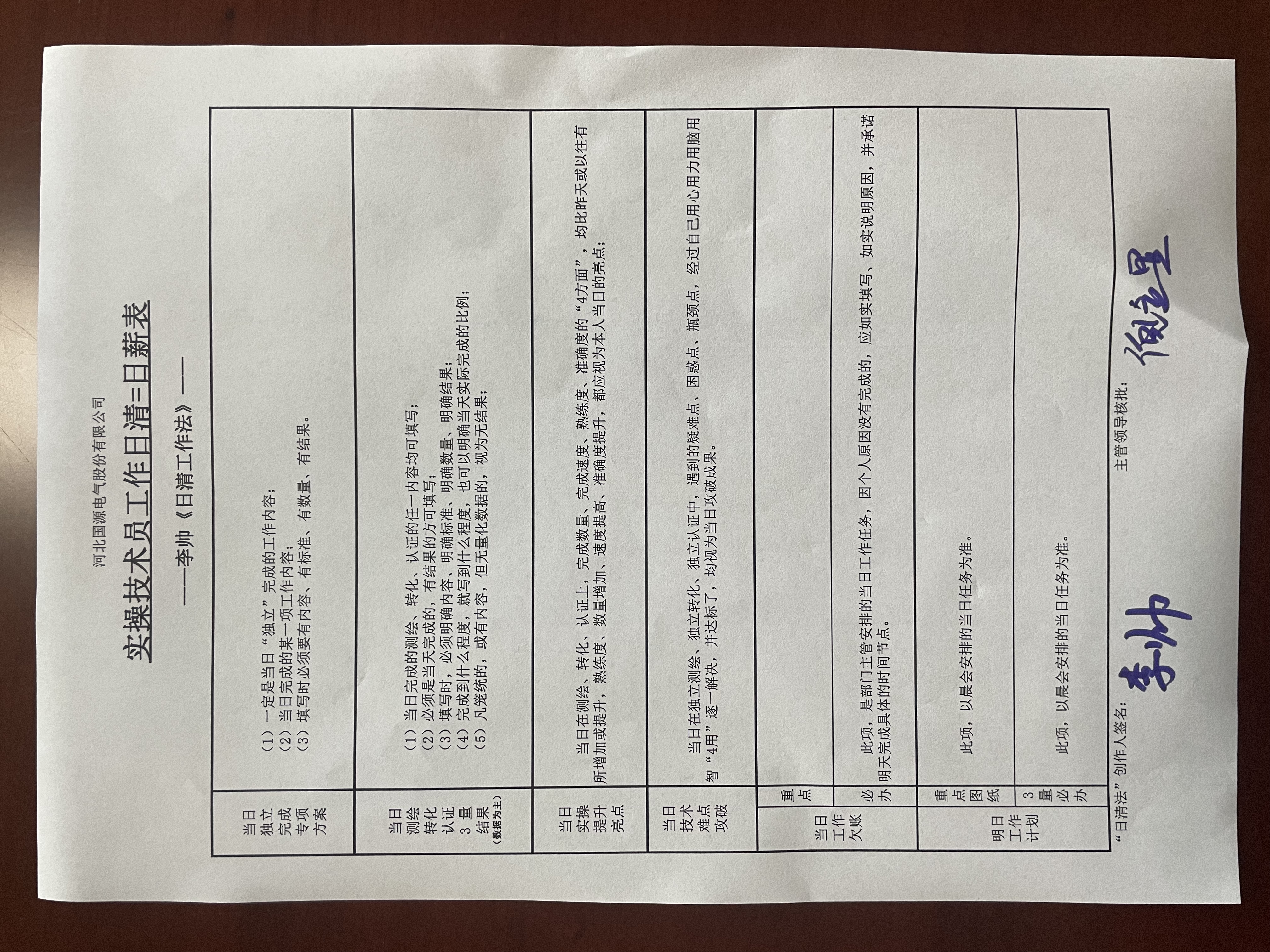 明早晨會李帥同志報告7日實操任務(wù)完成成果,周兆帆同志學(xué)習(xí)《李帥日清工作法》談親身感受。