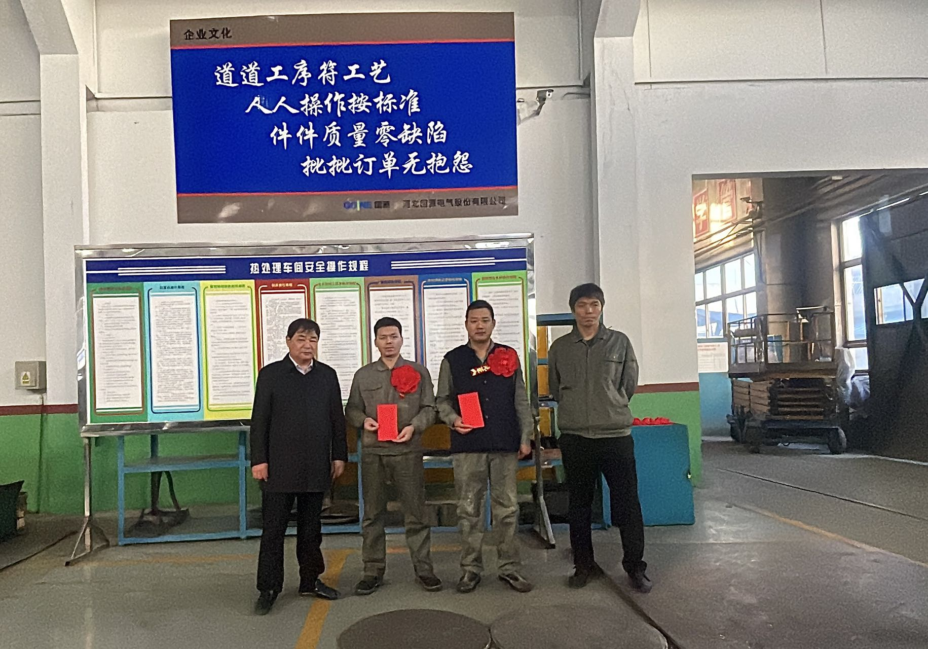 2023年121日上午0820,河北國源電氣股份有限公司舉行“創新標、攀高標、奪最佳、爭免檢、贏高獎”頒獎儀式。現場總督察趙松飛同志主持頒獎儀式。